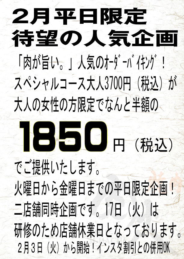 2月平日限定企画!!